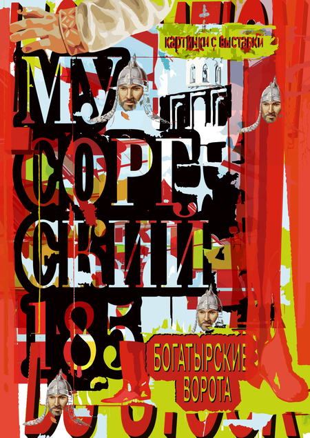 При создании мы опирались на торжественный характер произведения Мусоргского: богатыри, церковь, красные ворота. Художественный приём плаката основан на идее монтажа выставки, театральности. Особенно это подчёркивают красные «шторы» по краям плаката.