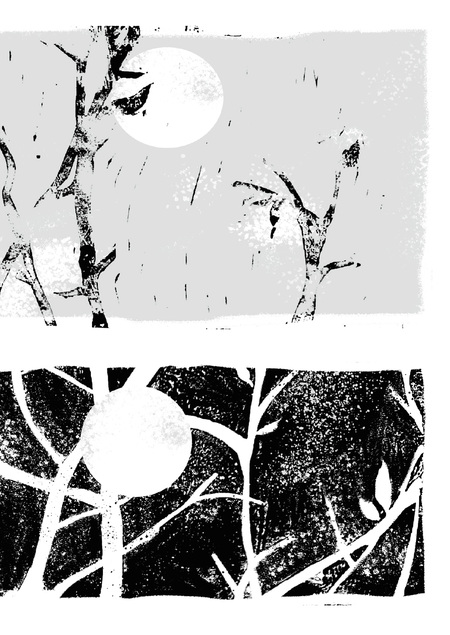 Книжка-картинка к хокку Бусона в технике линогравюры.