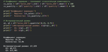 Box plot показывает разброс маржи по категориям. Пионы и тюльпаны — с большим разбросом