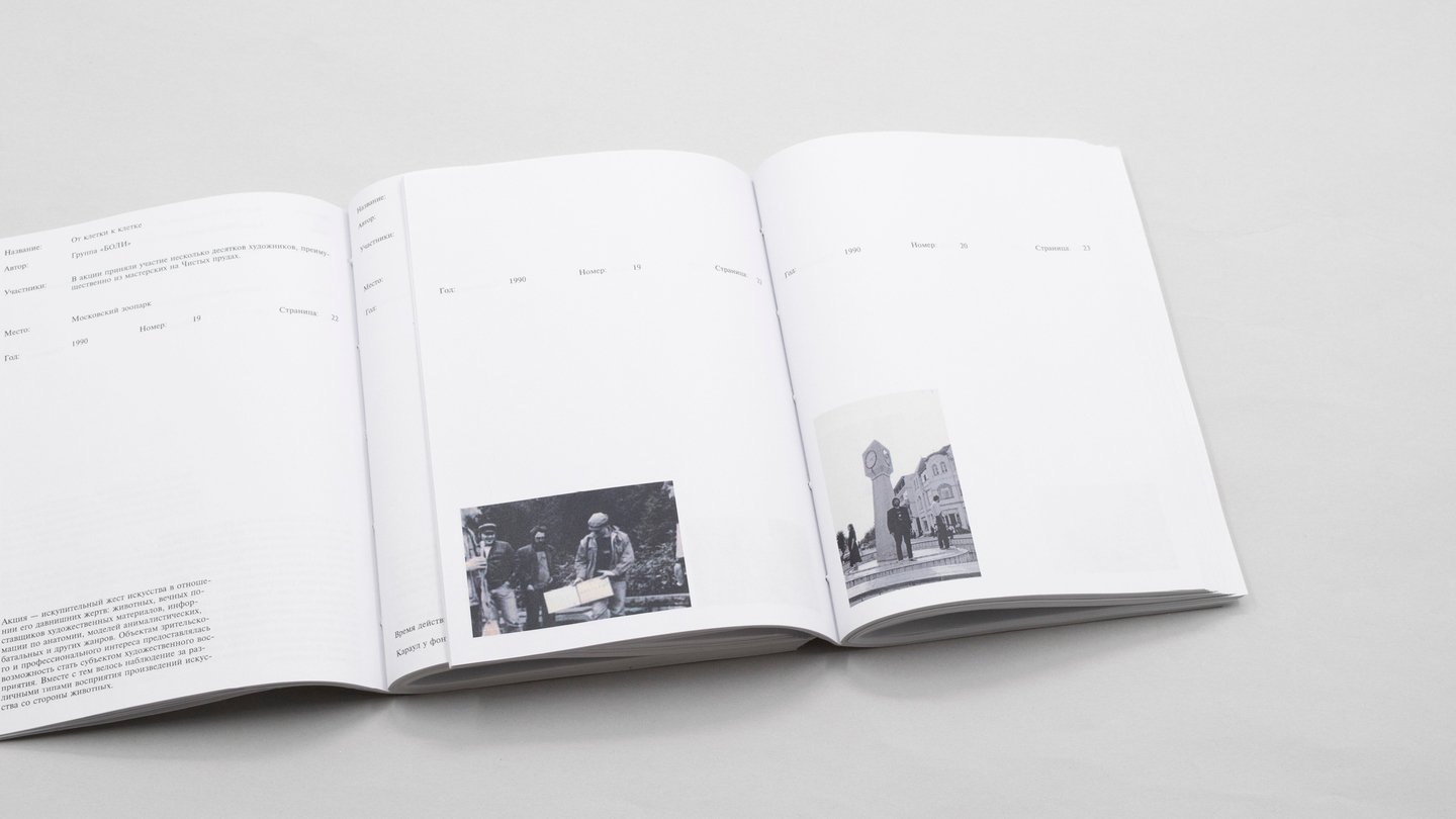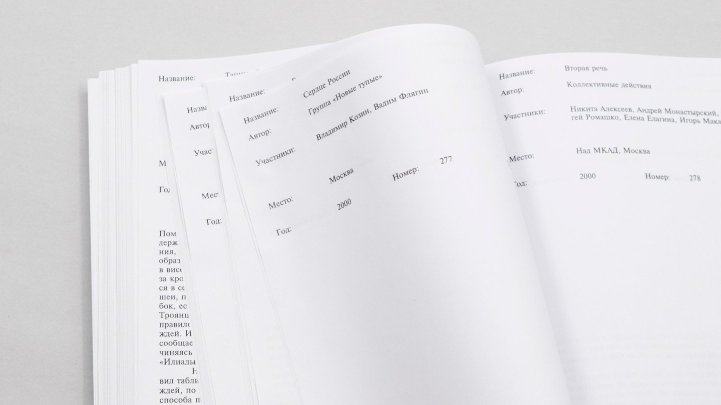 Двухтомное хронологическое собрание российского акционизма 1990–2000-х.