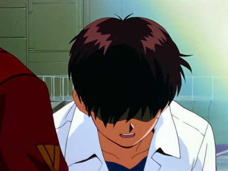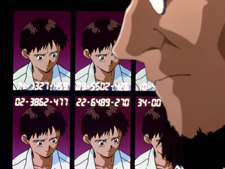 Синдзи можно назвать воплощением принципа индивидуации — иллюзорной границы, которая отделяет субъект от мира и от других «я», создавая видимость целостной, независимой личности. Обратим внимание на закрытую позу героя, его опущенную голову — он стремится оградить себя от ужаса реальности, где ему нужно быть сильным, нужно быть тем, кем он не желает быть. Икари постоянно повторяет: «Я не хочу быть здесь», «Оставьте меня в покое», — так выражаются его попытки замкнуться в своем «безопасном» мирке.