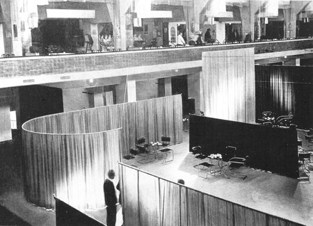 Было принято на выставках выкладывать ткани, как каталоги, но Райх вывесила все ткани на сложные подвесные конструкции, таким образом создав пятна в пространстве, которые больше привлекают внимание зрителя. Ткани не были монотонны, как свойственно для модернизма, они были с узорами и ярко окрашены, но в использовании ширм, как больших массивов — веяние нового времени. И этот прием Лилли Райх будет использовать и в дальнейшем.