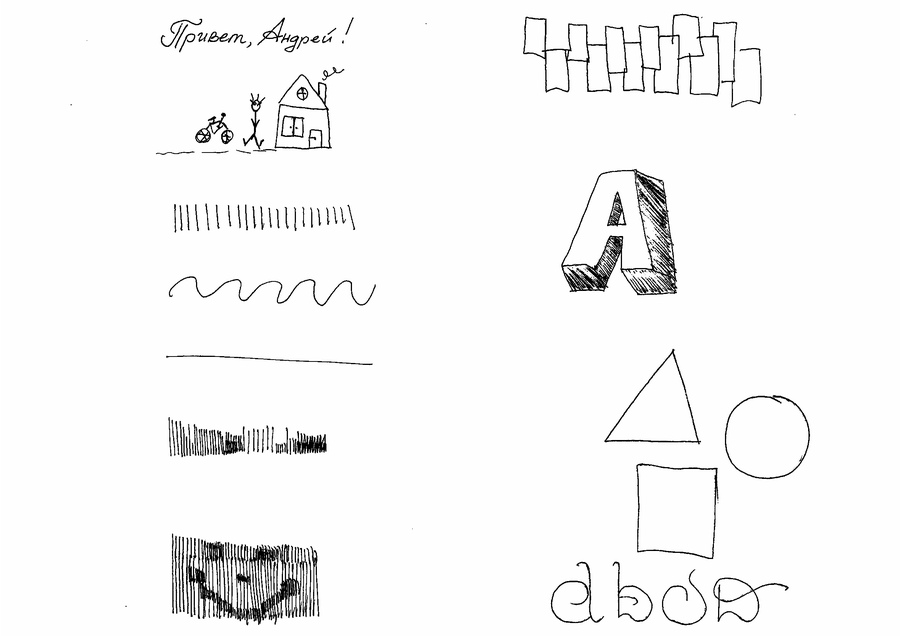 Первое упражнение, которое видят наши ученики основывается на вариативности использования простой ручки: от обычной текстовой записи до различных объемных фигур и сложных линейных композиций. С помощью упражнения они развивают нестандартный подход к предмету и начинают сами эксперементировать не только с его предназначением, но и с его применением.