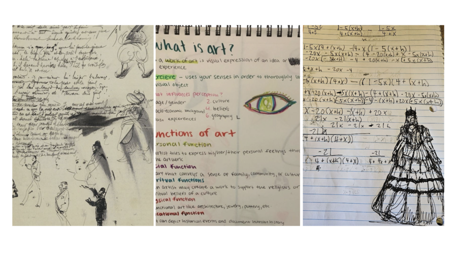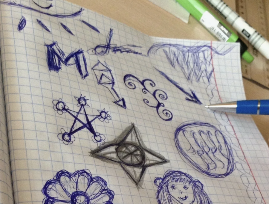 В мудборде проекта хотелось отобразить творческие способности большинства людей, которые происходят случайно в период рутинной работы (например, ведения конспектов или записи под диктовку). Из личного опыта, можно сказать, что красивые рисунки созданные лишь совокупностью линий могут появляться во время телефонных звонков или созвонов в конференции.