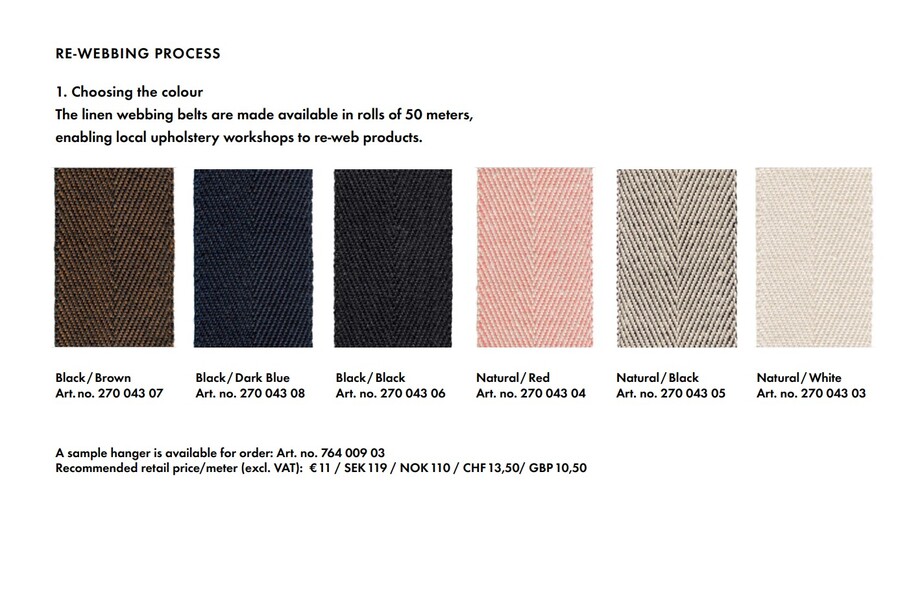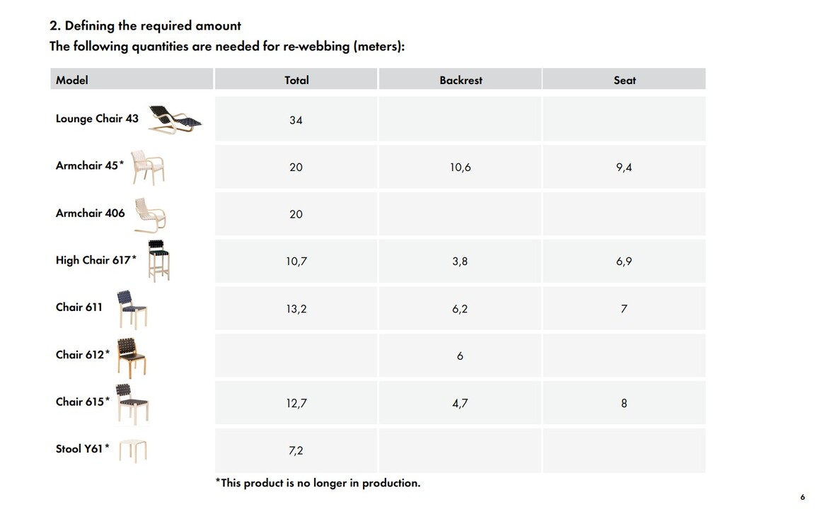 Понимать срок годности, предупреждать старость предмета и продлевать ему жизнь — очевидно, одна из задач Артека. На сайте есть подробная инструкция по замене лямки для стульев и кресел 43, 45, 406, 617, 611, 612, 615 и столика Y61. Лямки существуют в нескольких цветах, всё вместе имеет формат каталога, при этом сама инструкция очень подробная. Подобные инструкции характеры для финского дизайна в целом, в котором значительное место занимает Артек. Например, влияние на IKEA и другие скандинавские аналогичные бренды очевидно.