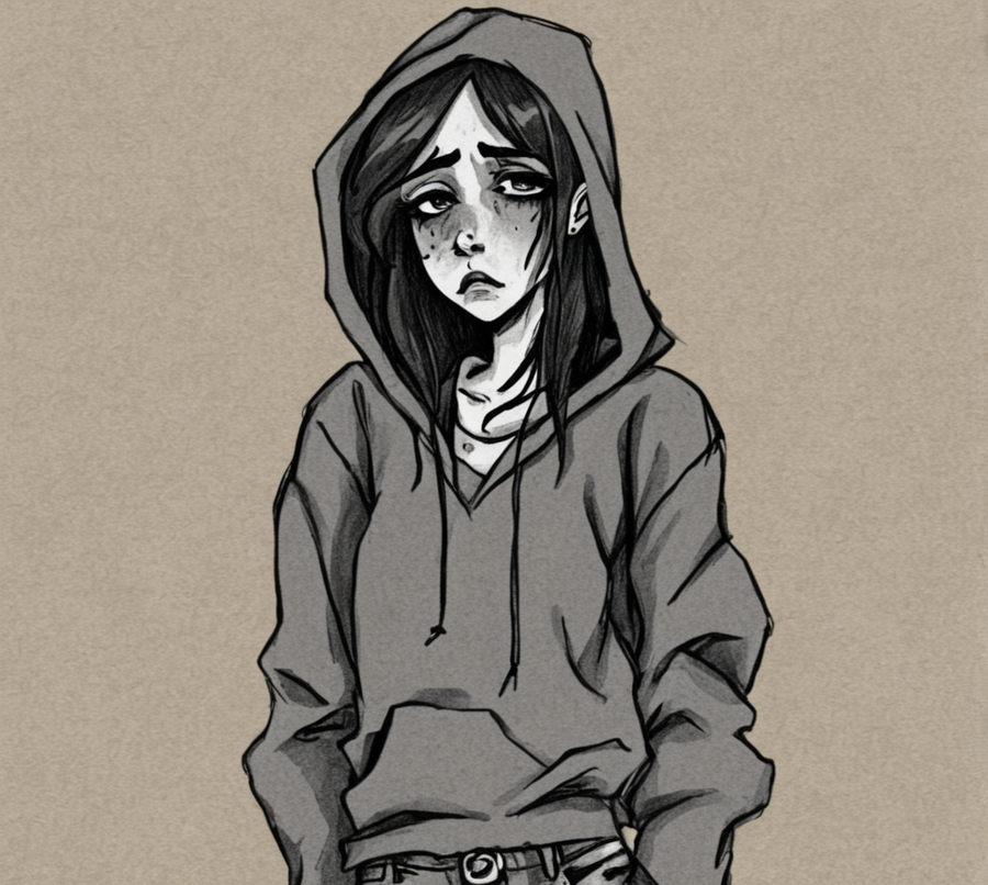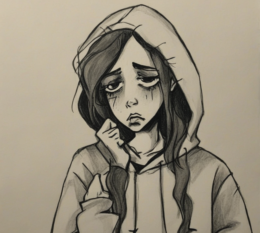 Вот, например, один и тот же промпт «KMPLZ, a drawing of a sad girl in a hoodie and jeans» в разных значениях num_inference_steps (20, 50, 70)
