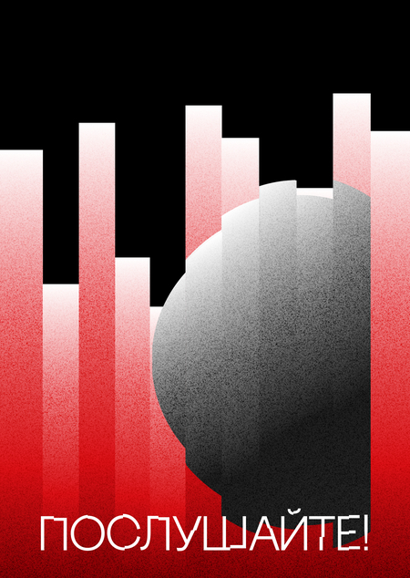 «Послушайте!» — выставка звука, в которой, находясь в маске, во мраке, человек, проходя через залы выставки, способен один на один встретиться со своими страхами, что позволит ему понять себя и наладить контакт с миром
