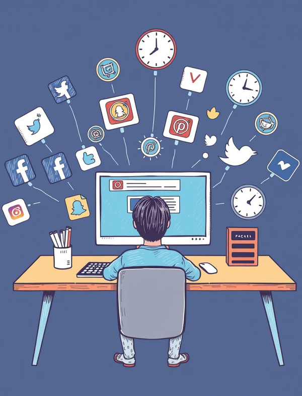 Qwen https://chat.qwen.ai/c/9f9e8a6a-53e4-4ebd-8499-a5670ce0f07a При помощи Qwen была сгенерирована обложка для работы. Prompt: generate a hand-drawn vertical graphic image that will illustrate the topic «the impact of social networks on productivity». The image must contain many icons of social networking applications. use these colors: