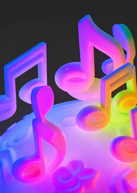 Промпты: Futuristic music concert, glowing stage with neon purple and red lights, black background, dynamic composition, high detail, modern music experience. 3D headphones, high resolution, detailed, realistic, black background, neon accents. 3D musical notes, glowing neon lights, abstract design, black background, futuristic style. 3D Columns, glowing neon lights, abstract design, black background, futuristic style. 3D Microphone (dynamic, condenser), glowing neon lights, abstract design, black background, futuristic style. 3D Violin, glowing neon lights, abstract design, black background, futuristic style. 3D Drums, glowing neon lights, abstract design, black background, futuristic style. 3D Synthesizer, glowing neon lights, abstract design, black background, futuristic style.