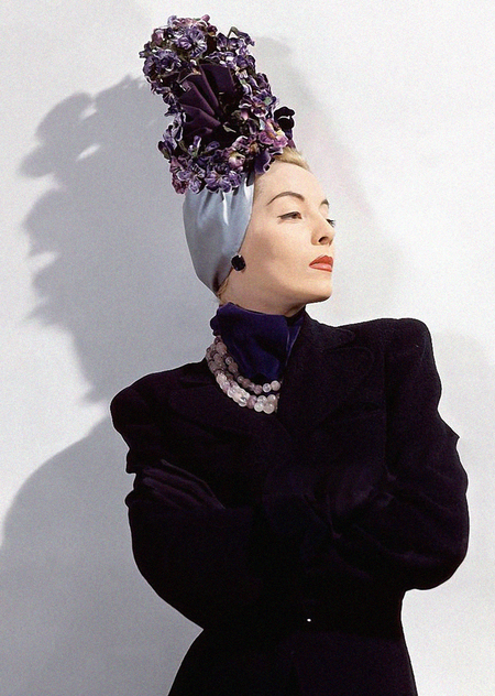 В военные 40-е тюрбан стал по большей части практичным аксессуаром, так как мог легко скрыть недостатки прически и помогал женщинам убрать мешающиеся волосы для работы на станках на заводах.