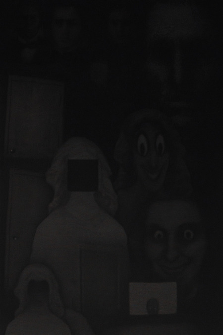 - Лица — крупный план, искажённые, с провалами в глазницах или ртах