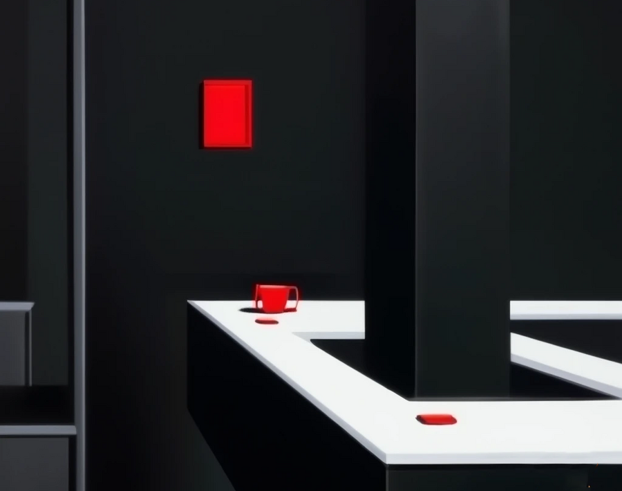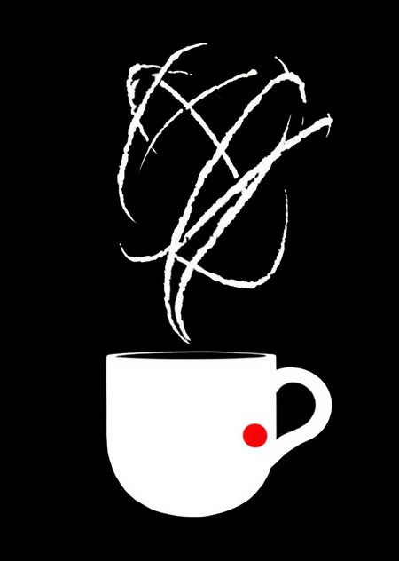 Модель: Leonardo AI Промт: For the tea brand «Calm Madness,» create a logo on a black background. The style is manic, minimalist, modernist, and black and white, add a small red dot in the center.