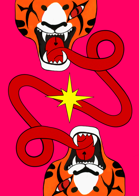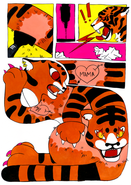 В моей вселенной я захотела изобразить тигрят, катающихся на скейтах, бьющих татуировки, делающих пирсинг и дающих рок-концерты. Как говорится, чем бы тигриное дитя не тешилось :)