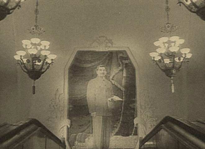 «Ленин и Сталин» на станции «Краснопресненская». 1954 г. Фото: Государственный музей архитектуры имени А. В. Щусева Мозаика «Иосиф Сталин» в вестибюле станции «Арбатская». Фото: stalinskoe.ru