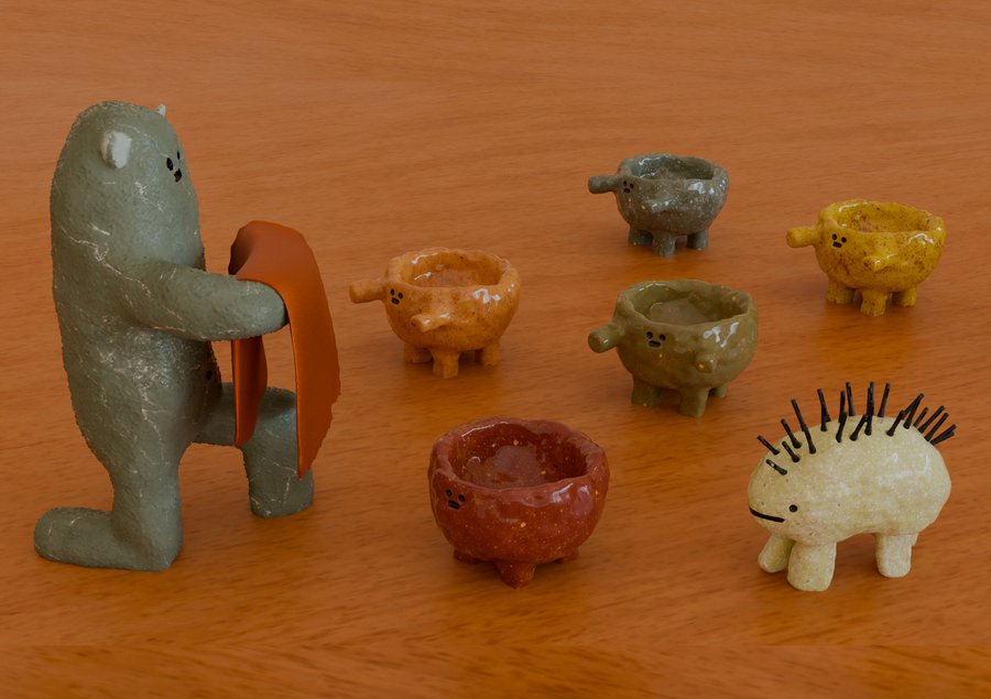 Чуваки делаются из природных крепких материалов: они бывают каменные и холодные, глиняные и шершавые, керамические и блестящие — в общем-то самые разные и на любой вкус! Они готовы помочь илллюстраторам, аниматорам, 3d-художникам и другим диджитал творцам справиться со стрессом ежедневных задач. Их можно щупать, гладить, или просто оставить на столе выполнять свою работу.