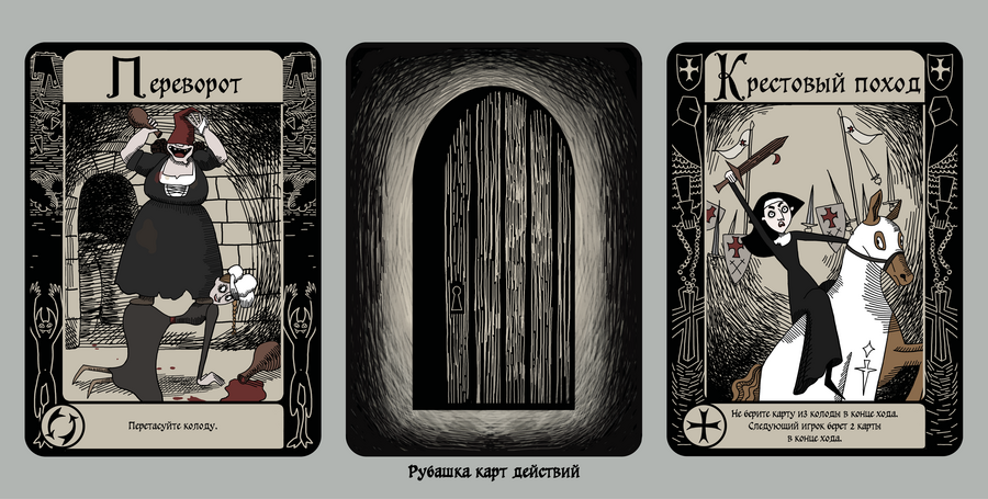 Отдельно для таких действий в наборе есть «Замко-карты». По одной они не имеют никакой силы, однако если сыграть 2 карты, можно взять любую карту противника, 3 — можно попросить карту конкретного номинала, но не факт, что она будет у соперника.