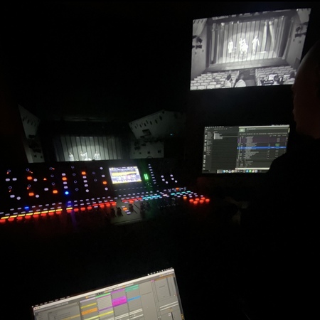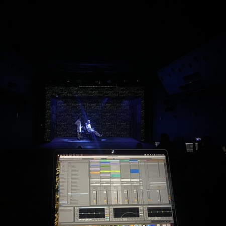 Важным этапом являлось распределение композиций по многоканальной системе театра. Это было достигнуто с помощью программы QLab, позволяющей выводить нужные композиции с определенных источников в зале театра. Это являлось не только средством для насыщения пространства, но и художественным элементом.