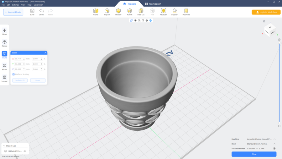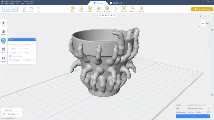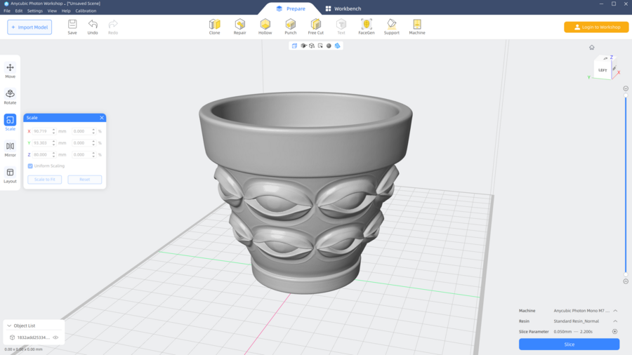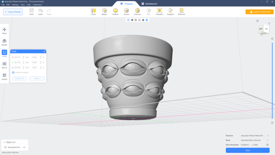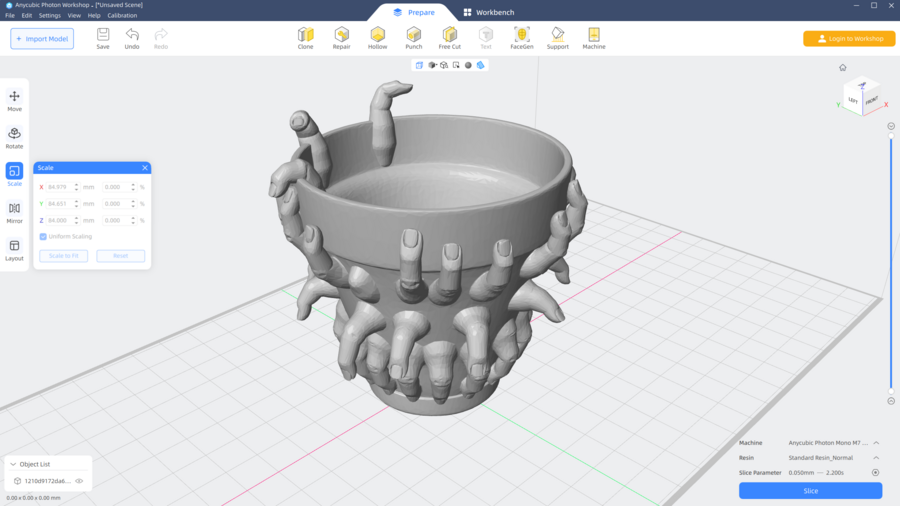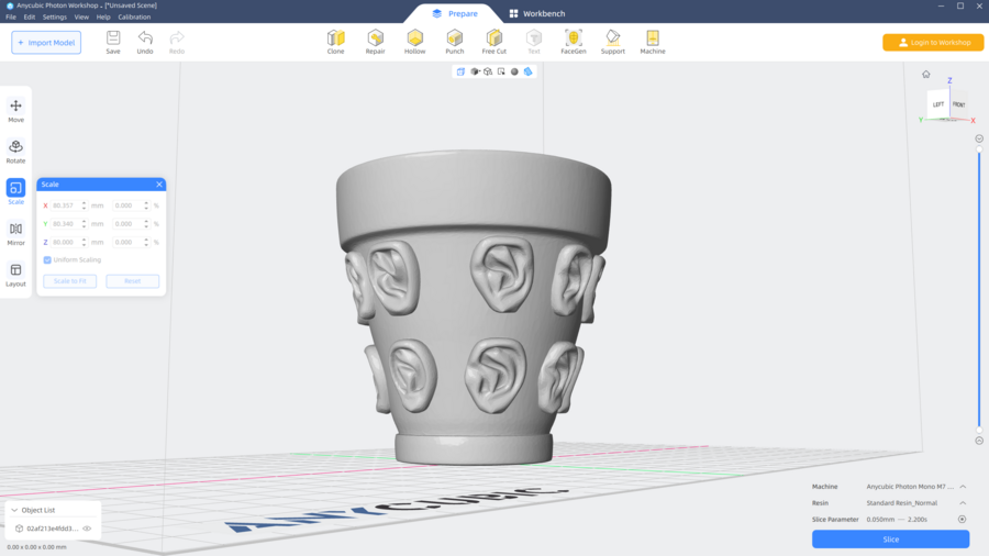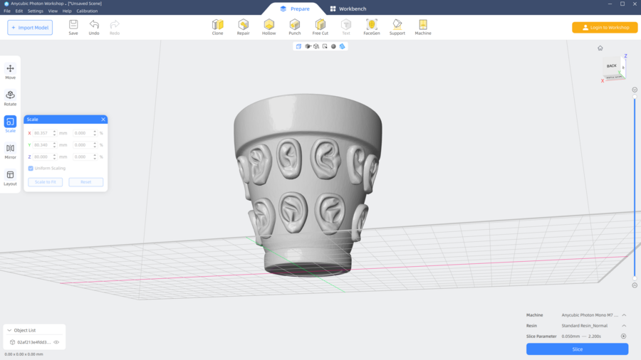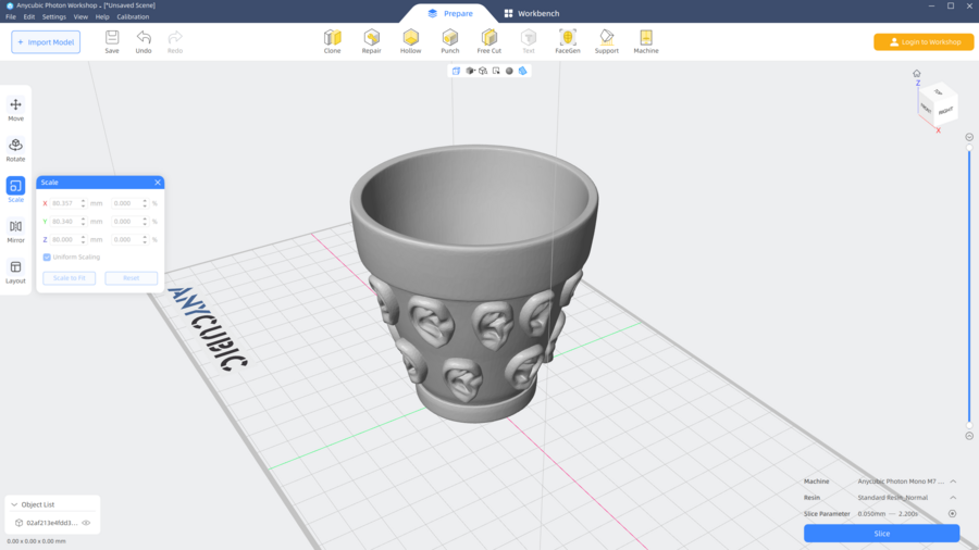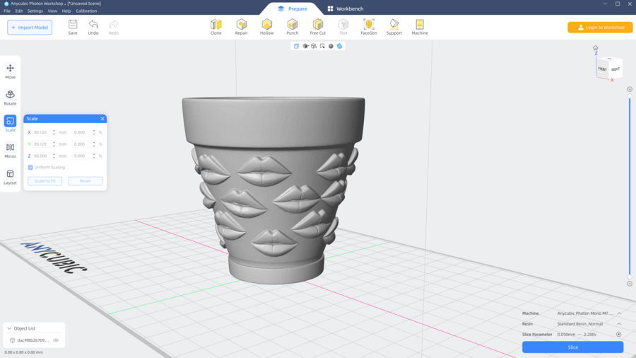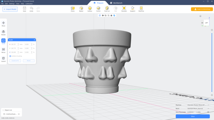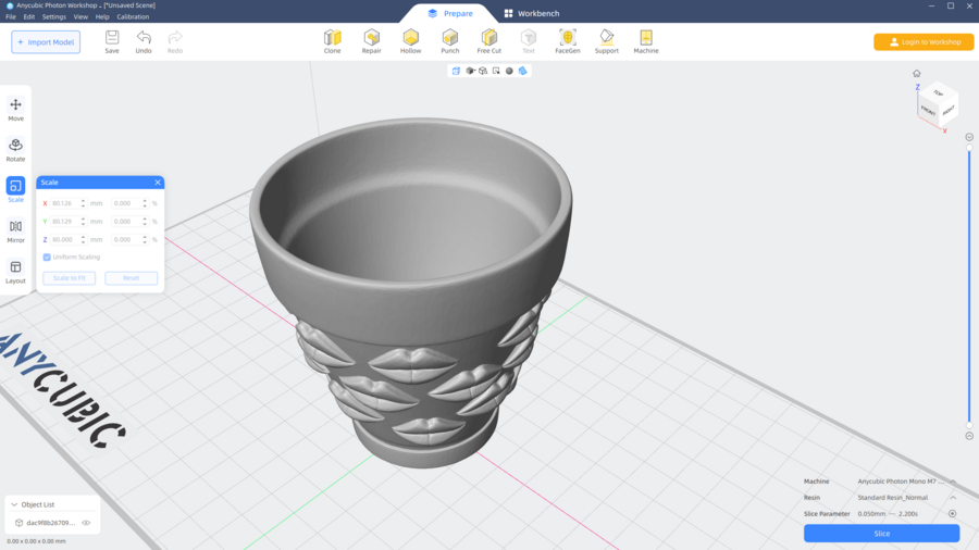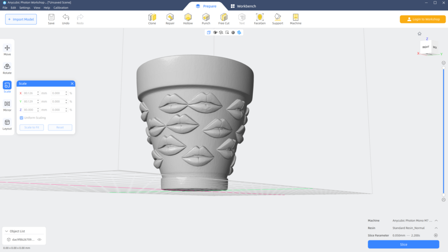Размер в программе печати выстраивается пропорционально по координате Z: 80 мм