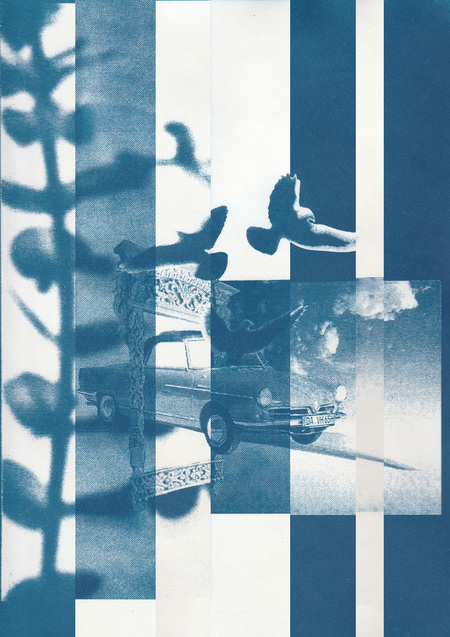 Работа посередине — фотопечать, получившаяся за счёт наложения негативов правой и левой работы — более контрастной обработки и менее контрастной.