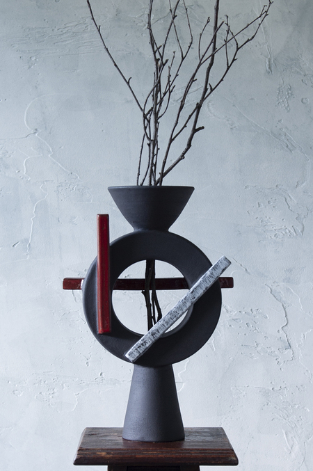 Керамический интерьерный «квазник» для сухоцветов или одного цветка, объединяющий в себе традиционную гончарную форму квасника, функцию вазы и цвето- и формообразование русского авангарда.