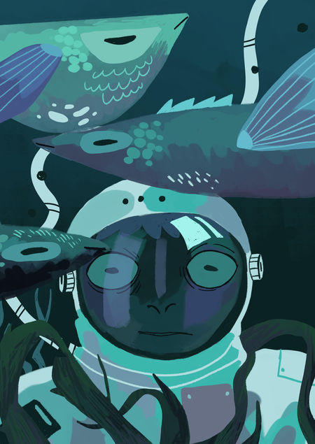 Это серия иллюстраций о сложностях, которые я испытываю в общении, я облекла их в метафору космоса и представила, как путешествие космонавта на новую неисследованную планету.