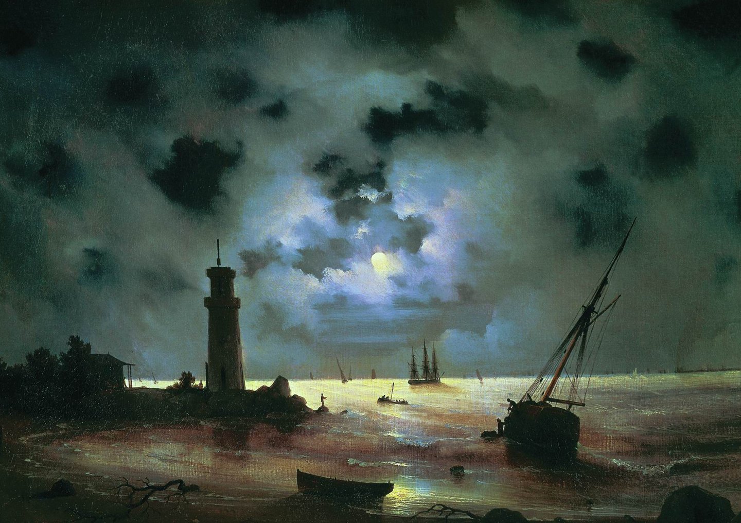 Изобр. 1: Иван Айвазовский. «Берег моря ночью. У маяка», 1837. Холст, масло / Изобр. 2: Пётр Кончаловский. «Семейный портрет», 1911. Холст, масло