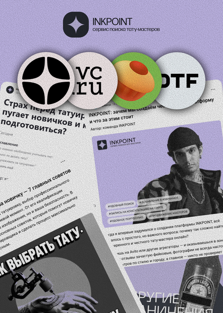INKPOINT — это современная платформа для подбора тату-мастеров и клиентов, которая объединяет удобство поиска с платным продвижением и полноценным портфолио для мастеров. Мы создаём пространство, где мастер и клиент находят друг друга быстро, безопасно и комфортно.