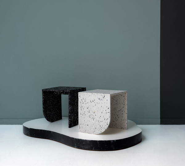 Martin tables are available in white and black. Both models are made from recycled plastic that can be reused later. The main source of inspiration was the material itself, which cannot be glued together. I wanted to design furniture that was constructed without the use of unnecessary elements.