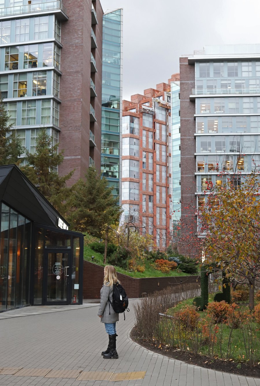Помимо того, что само здание комплекса поражает воображение, в районе вокруг него есть всё необходимое для жизни: кафе, современные офисы и деловые кварталы, фитнес-клубы и др.