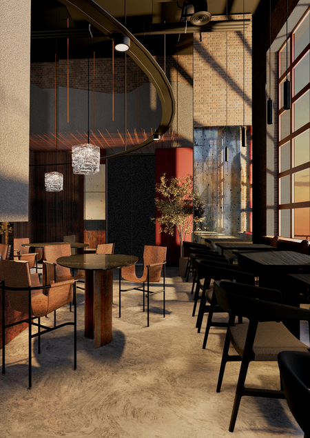 KALASTAA Ресторан на берегу Финского залива. специализируется на блюдах, приготовленных на огне. 2 зала объединены связующим звеном — барной стойкой из настоящего мрамора. Камин в центре помещения с видом на залив образует плотную посадку. Интерьер состоит из характерных материалов для локации и тематики заведения: бетон, ржавый металл, натуральный камень и кирпич.