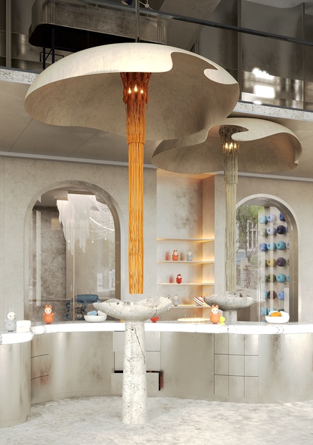 Пространство объединяет три бренда — Notem, Asiknova Ceramics и Svyazat, — превращая их изделия в арт-объекты современного ремесла. Это не просто магазин, а галерея тепла в бетонном мире, где каждый предмет рассказывает о гармонии между индустриальной формой и человеческим чувством.