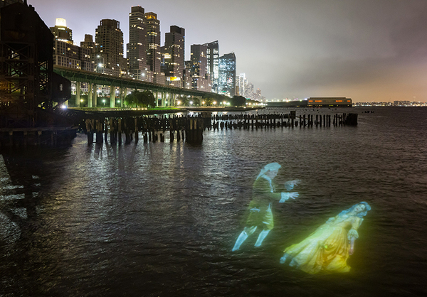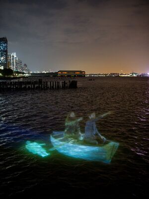 Инсталляция Тони Оурслера «Слёзы облака» была представлена на берегу реки Гудзон и полностью состояла из видео-проекций на туман, воду, деревья и мост. Проект объединяет различные пласты американской истории, превращая ландшафт в многослойное поле образов. Река служит медиумом памяти локальной истории, а свет используется как временная форма этой памяти.