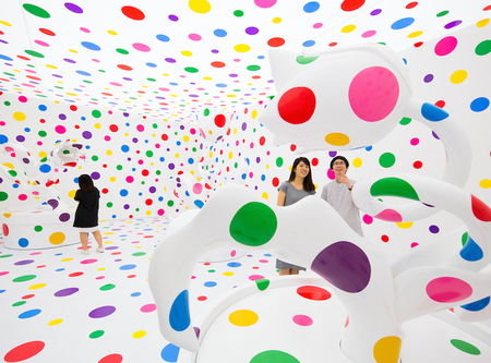 Яёи Кусама — японская художница, которая работает в очень разных видах и техниках искусства, но чем бы она ни занималась, у всех ее работ есть одна общая черта — точки. Она создает удивительный мир, в котором точки присутствуют на поверхности любых предметов и даже на ней самой.