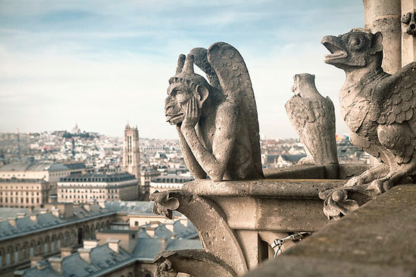 Химеру можно увидеть в виде скульптурных изображений фантастических чудовищ, которые составляют часть убранства готических соборов. Посмотри, какие химеры украшают собор Парижской Богоматери во Франции.