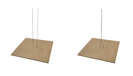 Шаг 1 Сделай два отверстия в картонном основании, продень через него проволоку так, чтобы оба ее конца остались наверху — это будет основание для твоей скульптуры.
