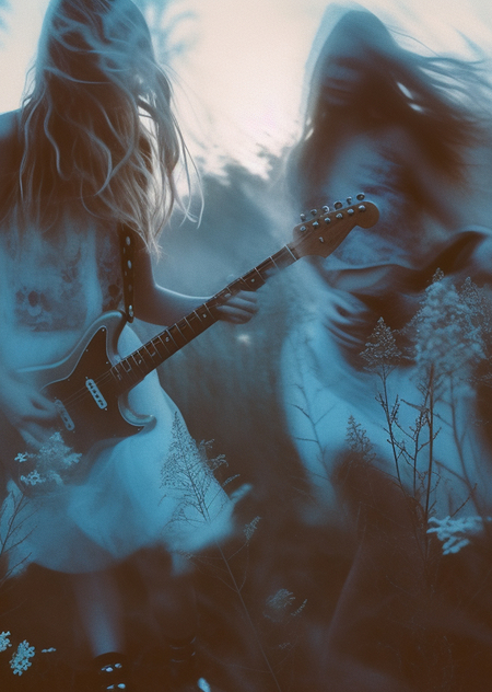 Проект посвящен соединению живописи Серебряного века и эстетики рока с помощью нейронок. Это история про девушек, которые создали свою музыкальную группу и поселились в заброшенной усадьбе