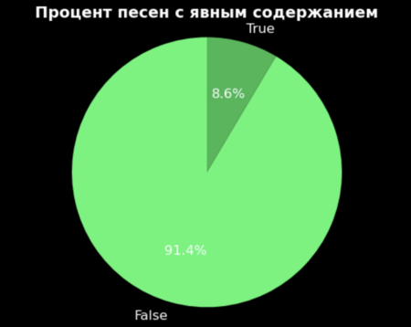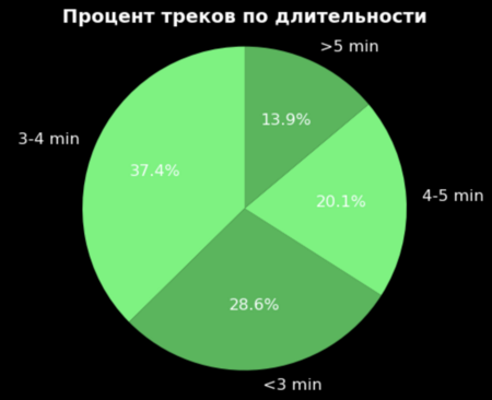 2.Далее были созданы круговые диаграммы для таких характеристик треков как длительность и наличие текста в треке.