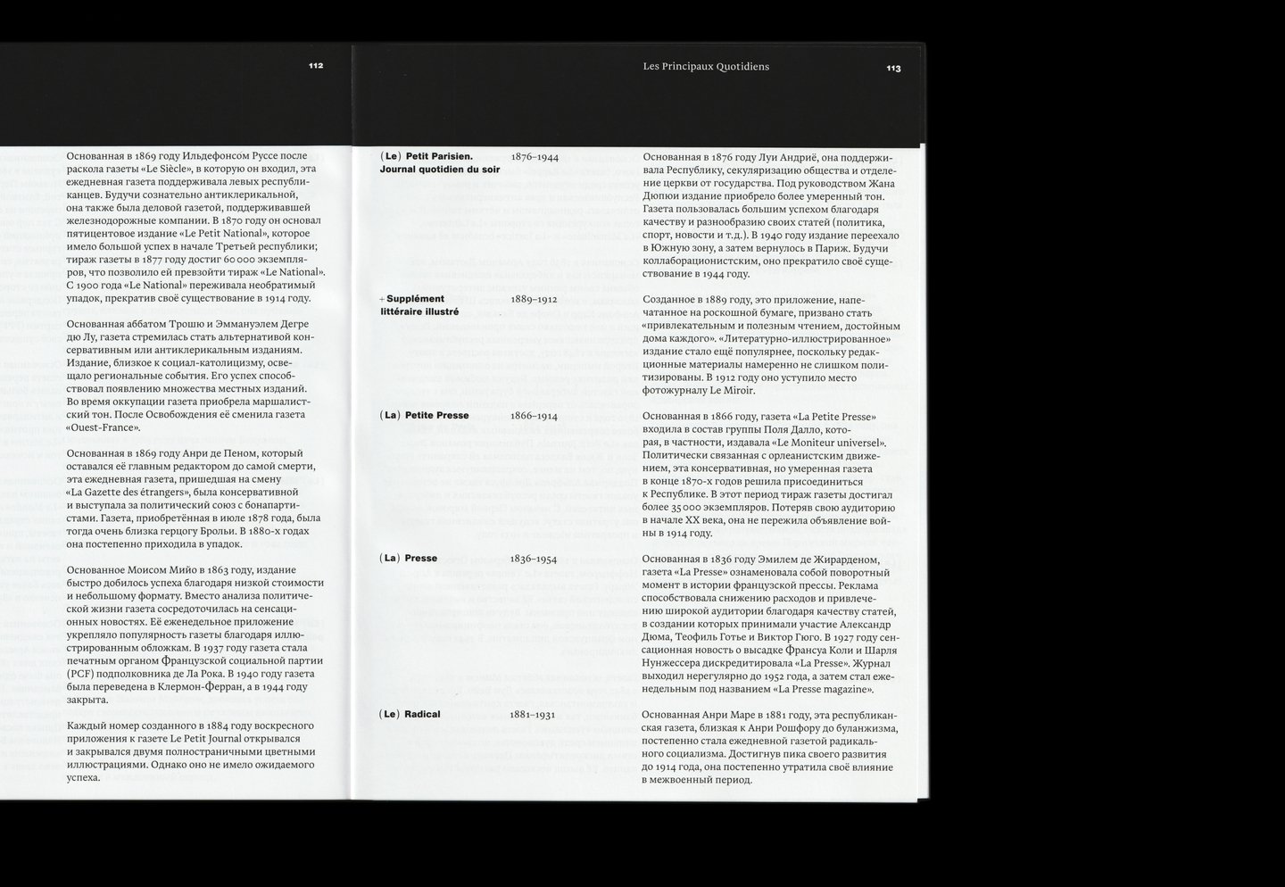 Au son de la presse… — визуальное исследование, посвященное эволюции типографического образа французских газет XIX века — периода радикальных трансформаций как в политике и массовой культуре, так и в технологиях печати