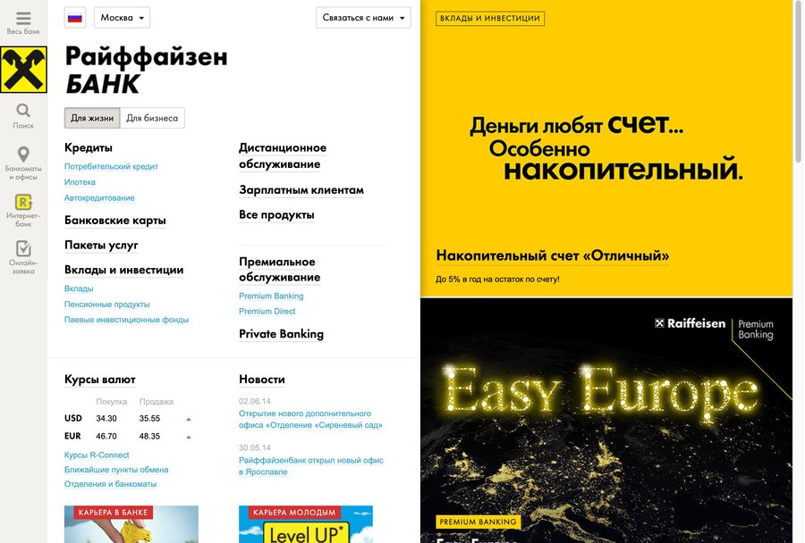 Еще один способ структурировать ваш сайт или приложение — это положить в основу задачи, которые пользователю нужно решить. Если вы банк, то задачи могут быть примерно такие: Вклады, Займы, Инвестиции, Помощь, Открытие счета.