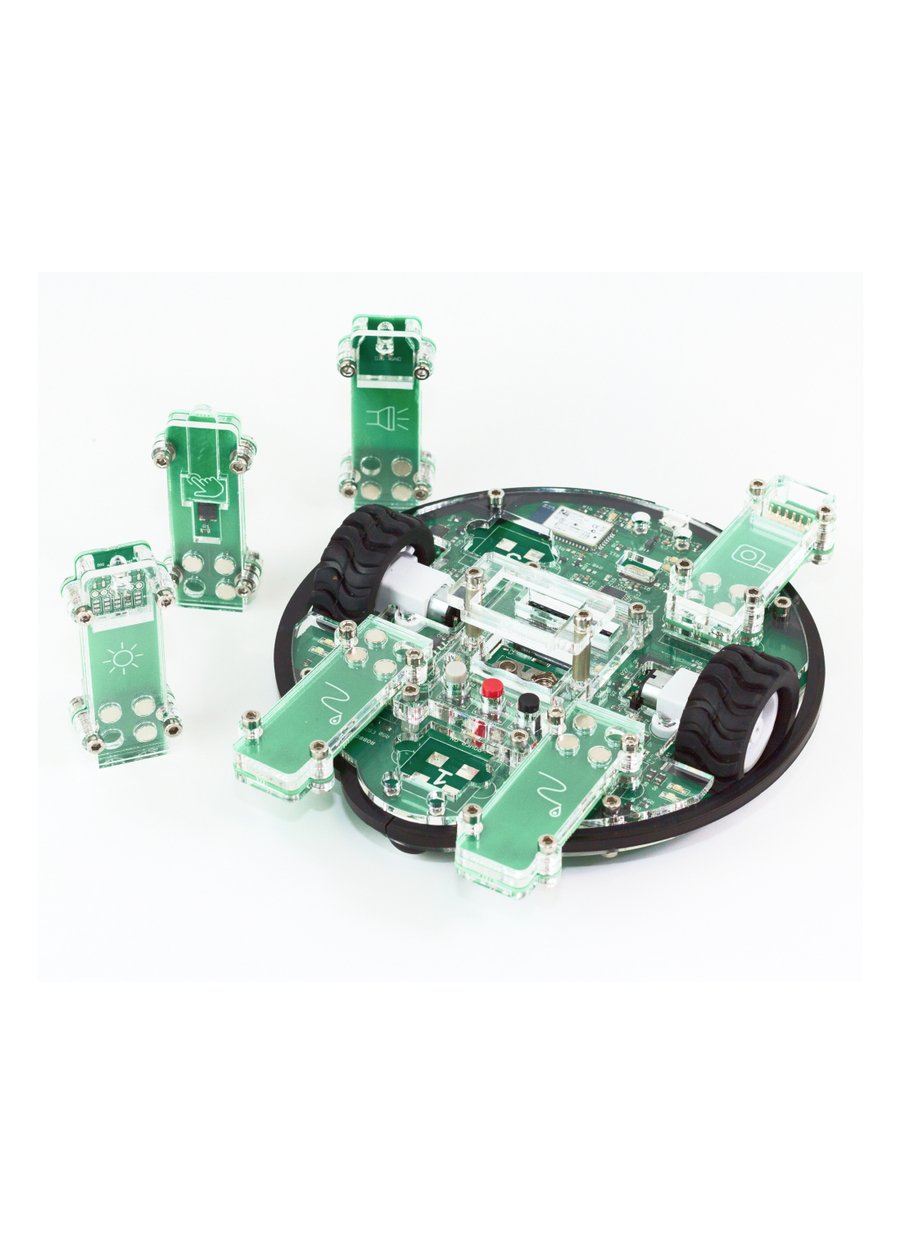 РОББО Робоплатформа — это робототехнический конструктор для обучения программированию и робототехнике детей от 5 до 18 лет. Микроконтроллер робоплатформы программируется с помощью визуального блочного языка программирования RobboScratch или в программной среде Arduino IDE. Робоплатформа оснащена пятью датчиками: 2 датчика линии, датчик касания, ИК-датчик расстояния, датчик света. Исполнительным органом платформы являются моторы, оснащенные энкодерами (датчиками угла поворота) для вращения двух колес. Подключение робоплатформы к компьютеру осуществляется двумя способами: с помощью USB-кабеля или с помощью Bluetooth. Питание Робоплатформы осуществляется или от USB компьютера или от батареи питания. РОББО Робоплатформа позволяет обучать детей основам программирования и робототехники без использования дополнительных сторонних плат и комплектующих. РОББО Робоплатформа позволяет решать следующие классы учебных задач: управление мощностью моторов и движение колесного робота с использованием энкодеров; повороты колесного робота; определение препятствия на близком расстоянии; фиксация касания; движение по лабиринту; движение по черной линии и неограниченное число комбинаций этих задач.