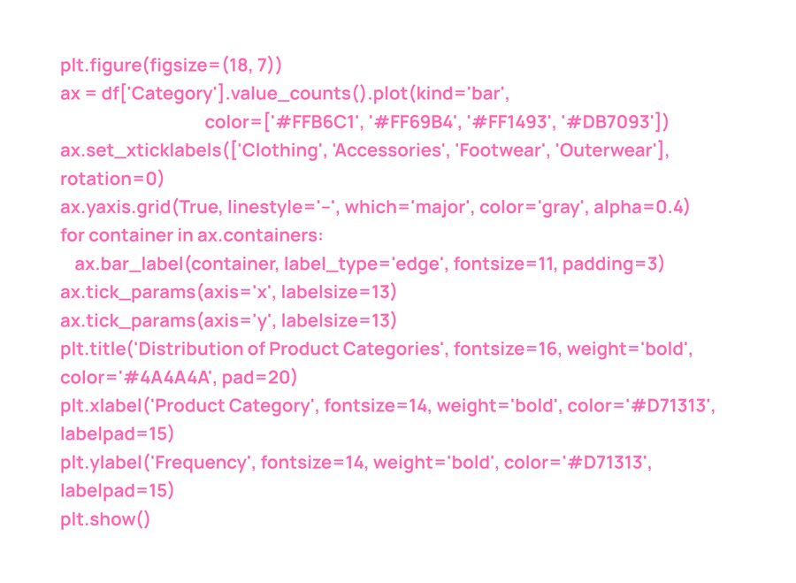 1. Customer ID — Уникальный идентификатор для каждого клиента. 2. Age — Возраст клиента. 3. Gender — Пол клиента (Мужчина/Женщина). 4. Item Purchased — Товар, купленный клиентом. 5. Category — Категория купленного товара. 6. Purchase Amount (USD) — Сумма покупки в долларах США. 7. Location — Местоположение, где была совершена покупка. 8. Size — Размер купленного товара. 9. Color — Цвет купленного товара. 10. Season — Сезон, в который была совершена покупка. 11. Review Rating — Оценка, данная клиентом за купленный товар. 12. Subscription Status — Указывает, есть ли у клиента подписка (Да/Нет). 13. Shipping Type — Тип доставки, выбранный клиентом. 14. Discount Applied — Указывает, была ли применена скидка к покупке (Да/Нет). 15. Promo Code Used — Указывает, был ли использован промо-код для покупки (Да/Нет). 16. Previous Purchases — Общее количество завершенных клиентом транзакций в магазине, за исключением текущей. 17. Payment Method — Наиболее предпочитаемый клиентом метод оплаты. 18. Frequency of Purchases — Частота, с которой клиент делает покупки (например, еженедельно, раз в две недели, ежемесячно).