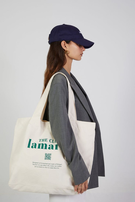 [14] mj + photoshop для вставки логотипа: https://i.postimg.cc/T1rVJX9x/TOTE-BAG-Beige.jpg a large tote bag for matcha company on the woman with modern branding text and in many light vivid greens, soft pinks and violet bloby shapes and soft, organic geometric shapes. The overall aesthetic is modern, clean, and effortlessly chic, with a focus on ecoconscious design and sophisticated simplicity --ar 16:9 --v 6.1