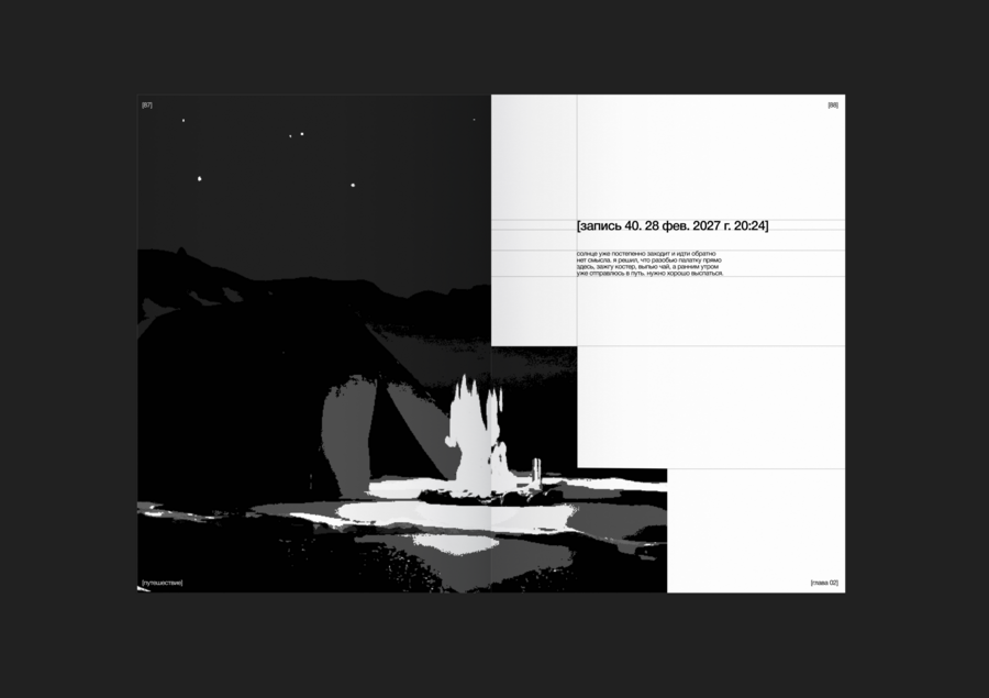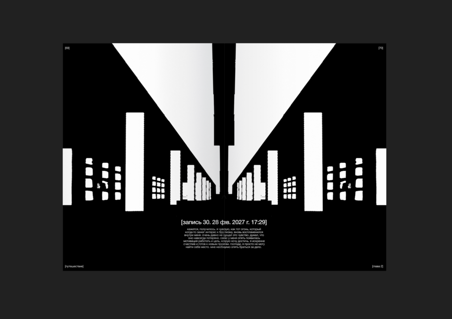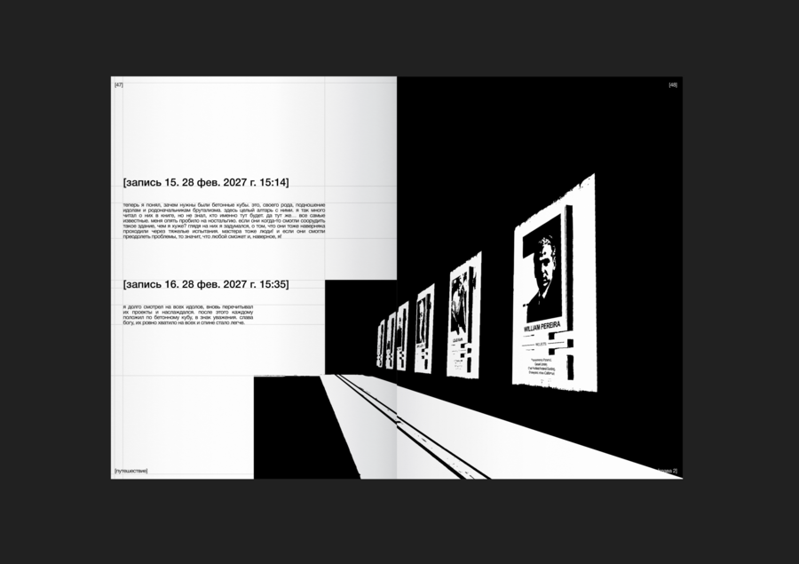 Книжное издание представляет собой историю одного архитектора-бруталиста, который столкнулся с выгоранием и апатией. Чтобы выйти из этого состояния он отправляется в загадочный храм, который может вернуть ему силы работать.