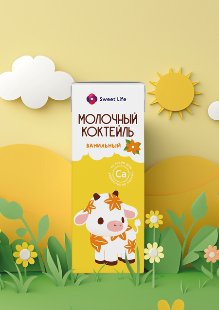 Задача: разработать дизайн упаковки детской молочной линейки «Сладкая жизнь» качества ГОСТ для супермаркетов Smart.
