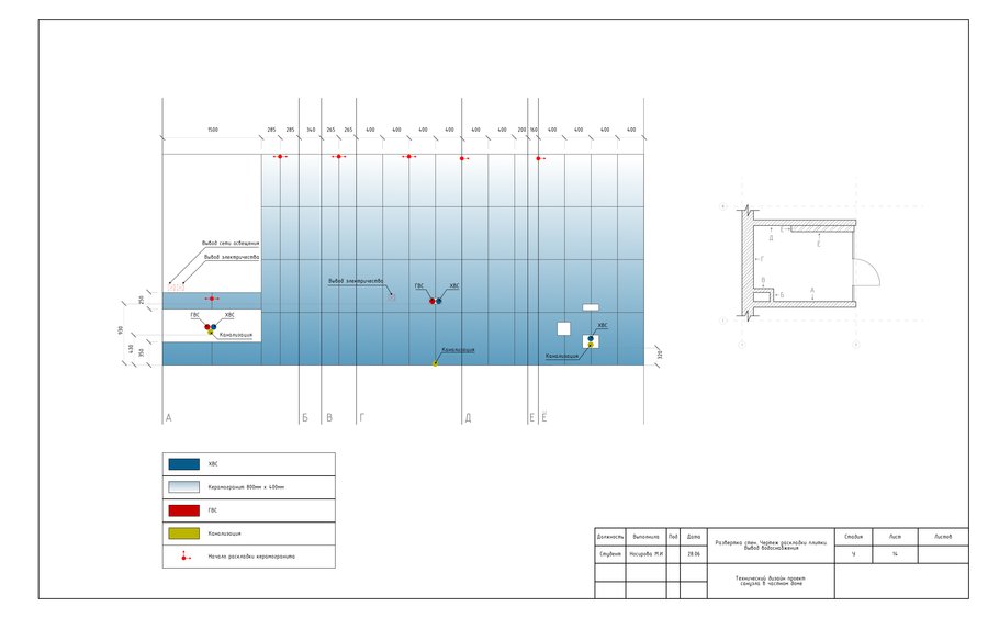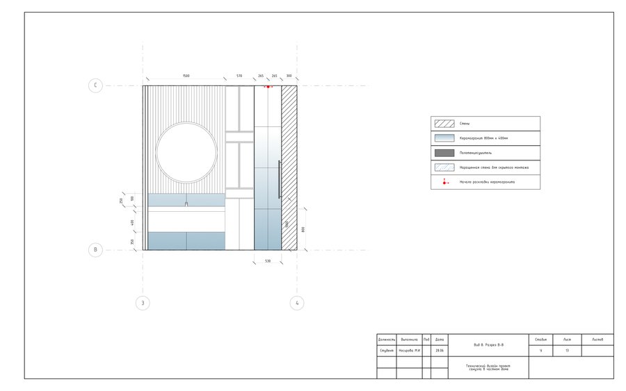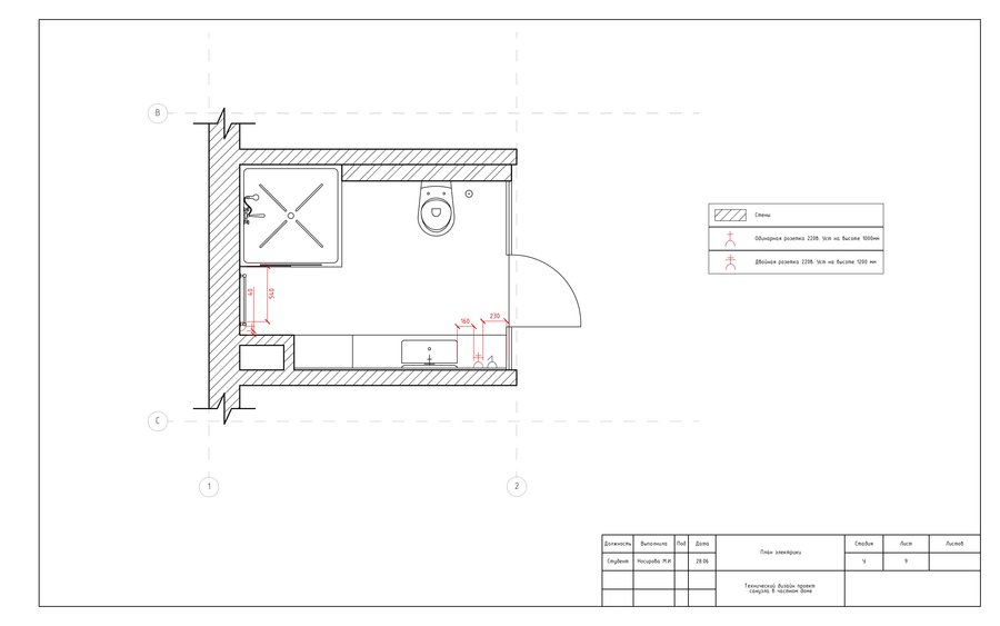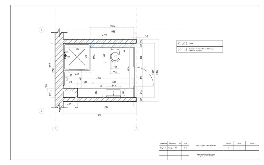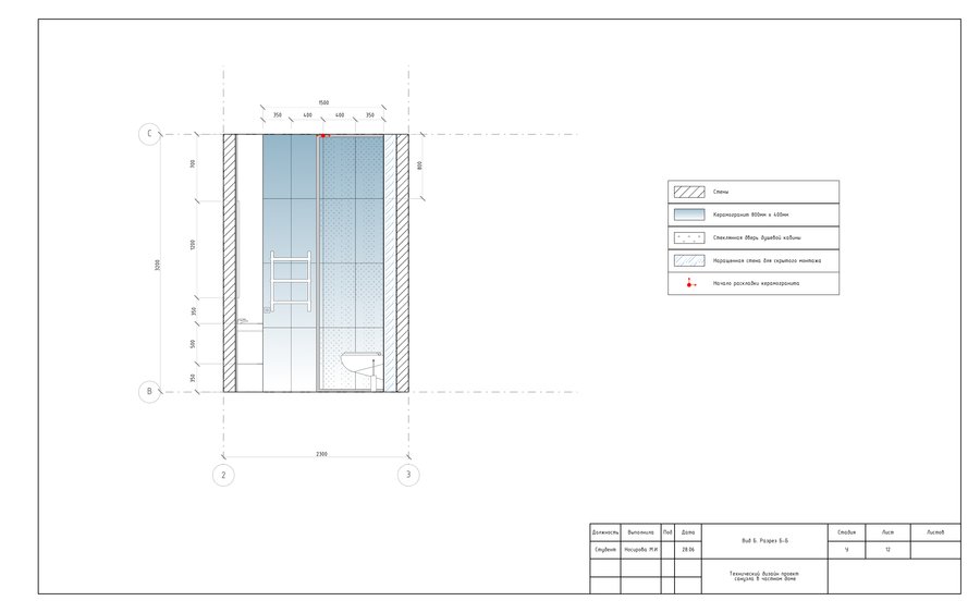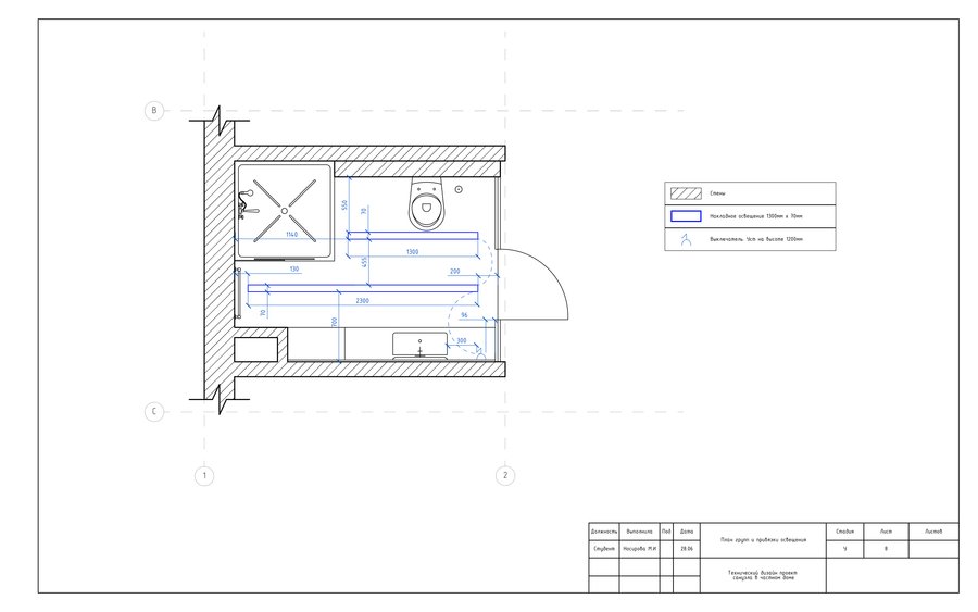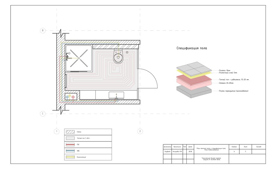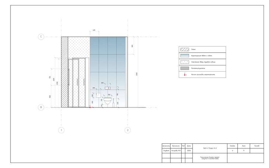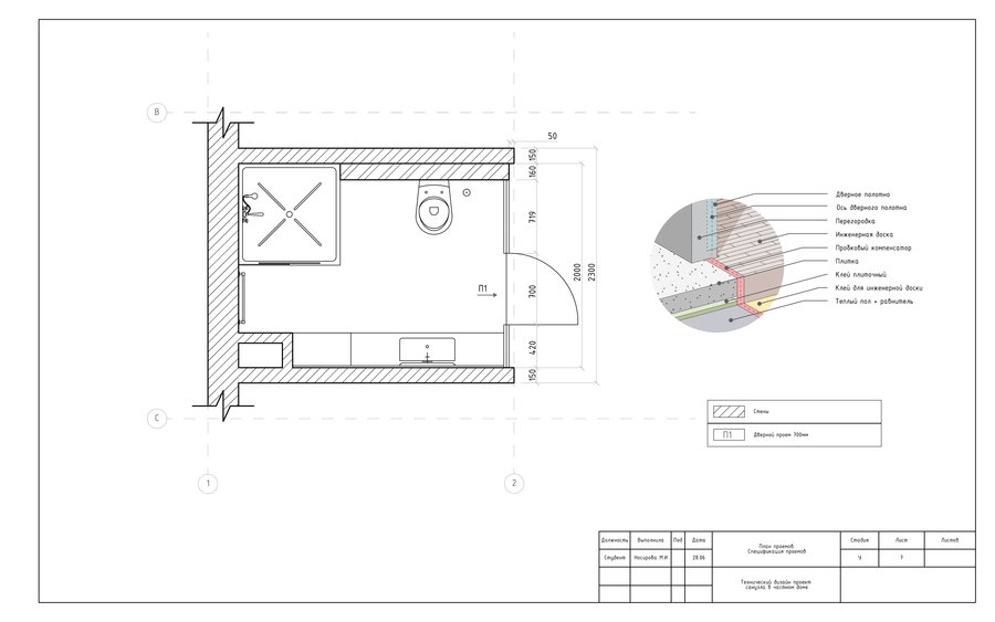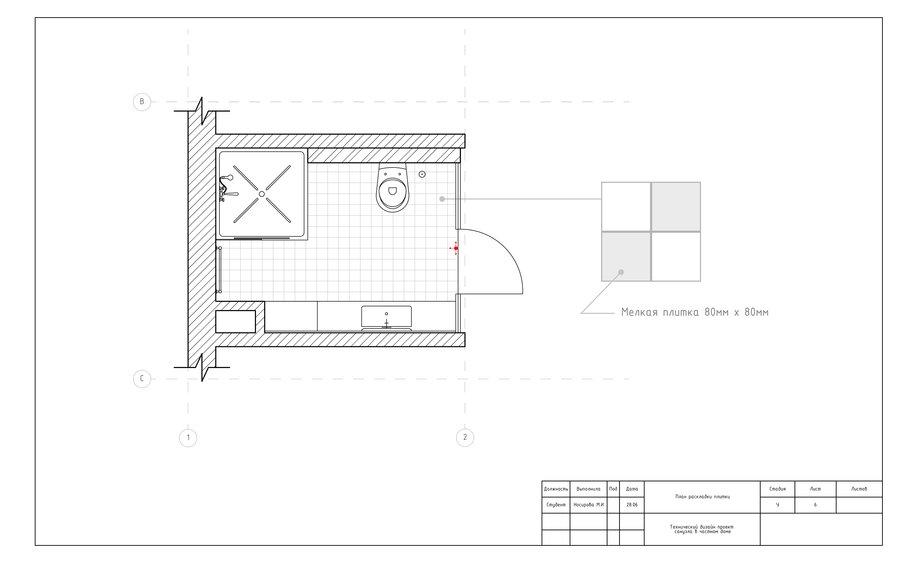 Альбом чертежей содержит планы, разрезы и спецификации санузла в частном доме, разработанном в прошлом модуле