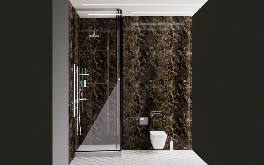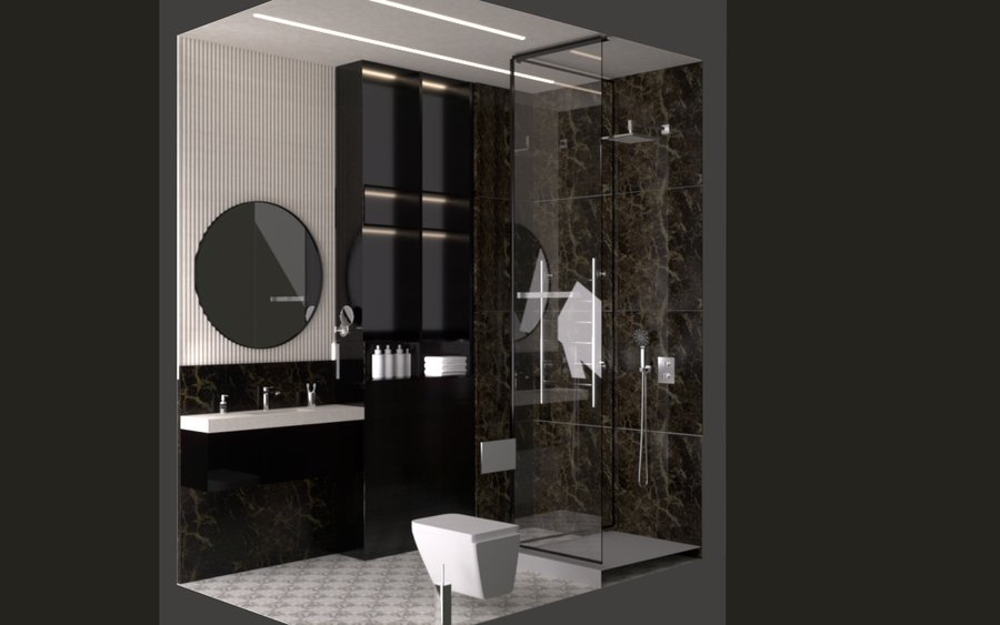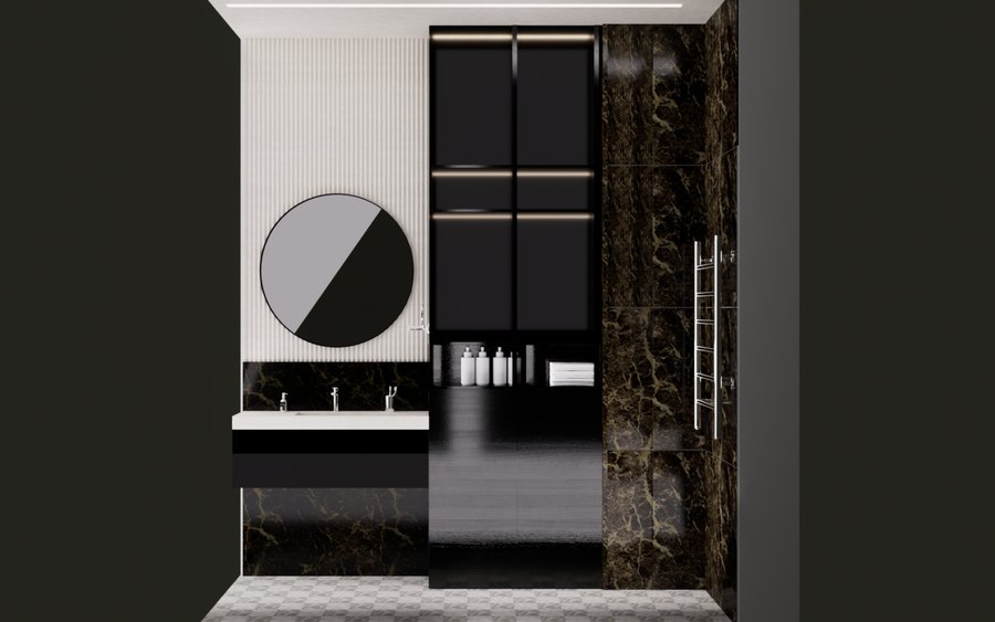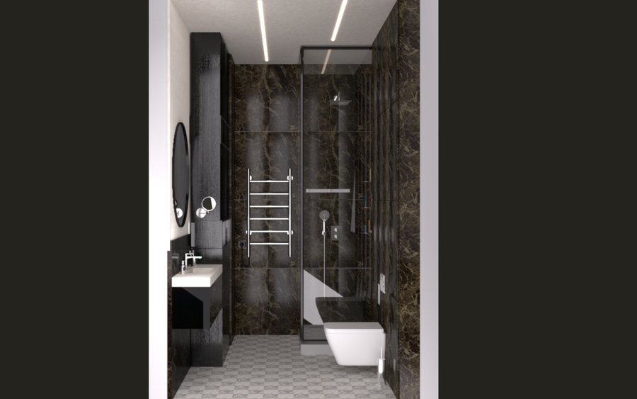 Дизайн санузла соответствует стилистике всего дома. Комплект чертежей подготовлен для проведения строительно-монтажных и отделочных работ.