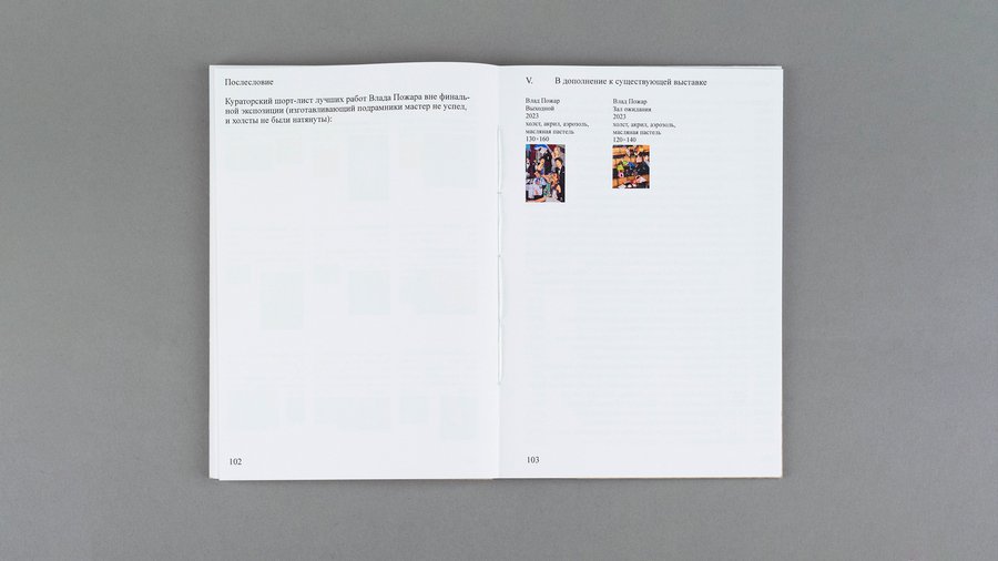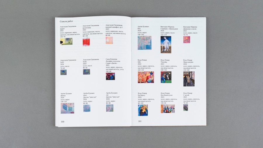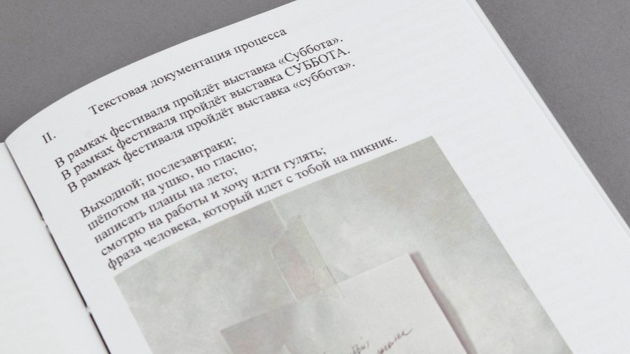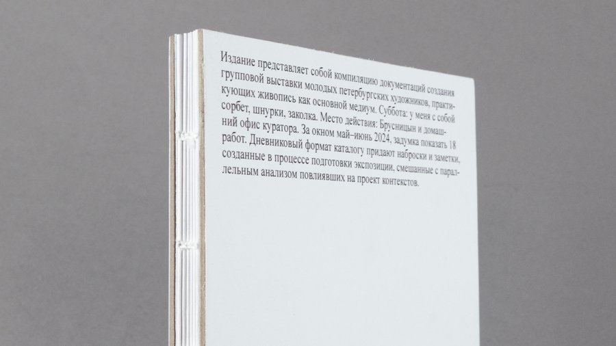 «Saturday: I’ve got my sorbet, my shoelaces, my necklace.» The catalogue is a compilation of documentation for the creation of a group exhibition of young Peterburg artists practising painting as the main medium. The diary format of the catalogue is attached to the outline and notes of the curator created during the preparation of the exhibition, which is linked to texts that have influenced the context of the exhibition.
