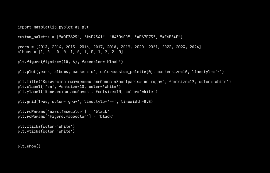 Благодаря графику, можно заметить тенденцию, что после 2021 года, «Shortparis» стали более активны чем раньше: два года подряд выпускалось аж два альбома.