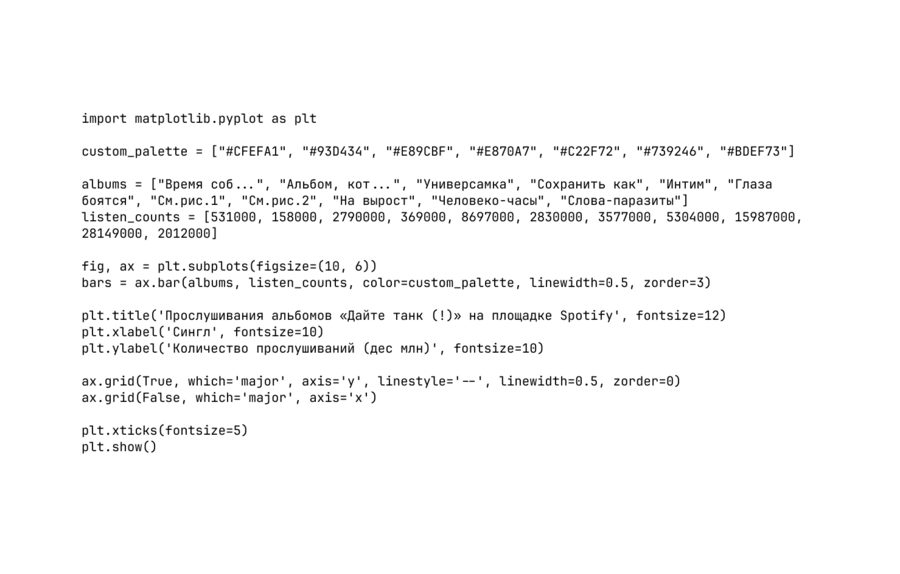 Для исследовательского проекта я выбрала две свои любимые группы: «Shortparis» и «Дайте танк (!)». Моим основным источником данных является платформа Spotify, которую я активно использую, и которая обеспечивает удобный доступ к информации о количестве прослушиваний. Эта платформа также она из немногих, которая предоставляет удобный общедоступный доступ к данным о прослушиваниях. Мой анализ будет охватывать как альбомы, так и мини-альбомы (далее EP (от англ. extended play)) групп. В завершение проекта я планирую проанализировать количество выпущенных на данный момент альбомов и EP каждой из групп с целью определить, кто из них выпустил больше контента.