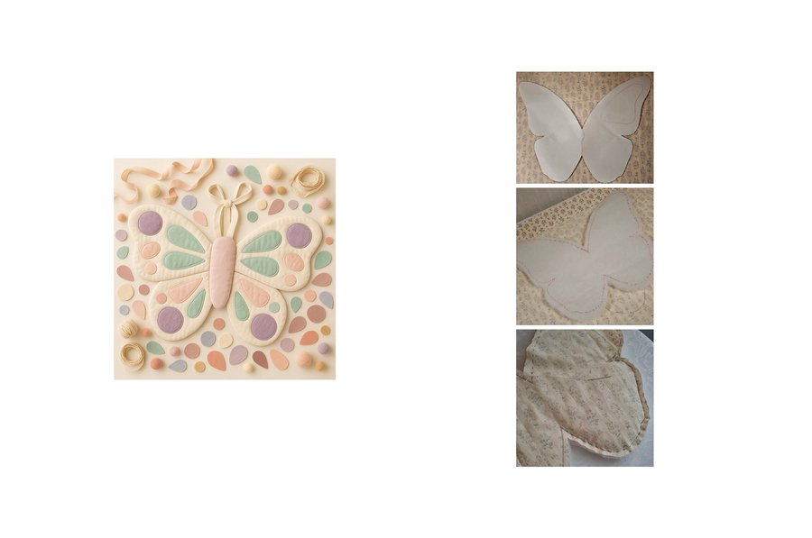 Набор включает в себя: крылья бабочки на мягких лентах, элементы крыльев разных цветов и фактур с липучками для крепления, каневые ленты для отделки, инструкцию с идеями дизайна и тематическими подсказками